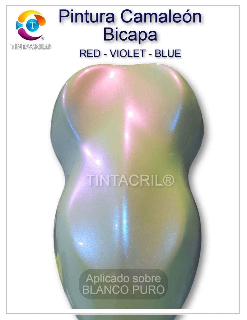 Manual de aplicación detalladoLas pinturas Camaleón de TINTACRIL® son pinturas a base de nácares, que ofrecen un efecto visual de cambio de color doble, triple o múltiple. Este cambio de color a otro se produce dependiendo del ángulo de visión del observador. Las pinturas Camaleón son productos sencillos de aplicar y garantizan un perfecto rendimiento de los colores frente a los rayos UV, al calor y a la intemperie. Se recomienda su uso sobre fondo de color NEGRO INTENSO PURO, sobre el cual sobresaldrá el efecto con unas pocas manos. También se pueden aplicar sobre otros colores de fondo intensos como gris, violeta, azul, magenta, blanco, perlados de interferencia, y un largo etcétera, sobre los cuáles obtendrá efectos personalizados y únicos. Según el color de base, obtendrá distintos tonos tornasolados. Formuladas con nácares a base de magnesio, se obtienen efectos más saturados, con mayor poder de cobertura, con transiciones de colores más intensos.