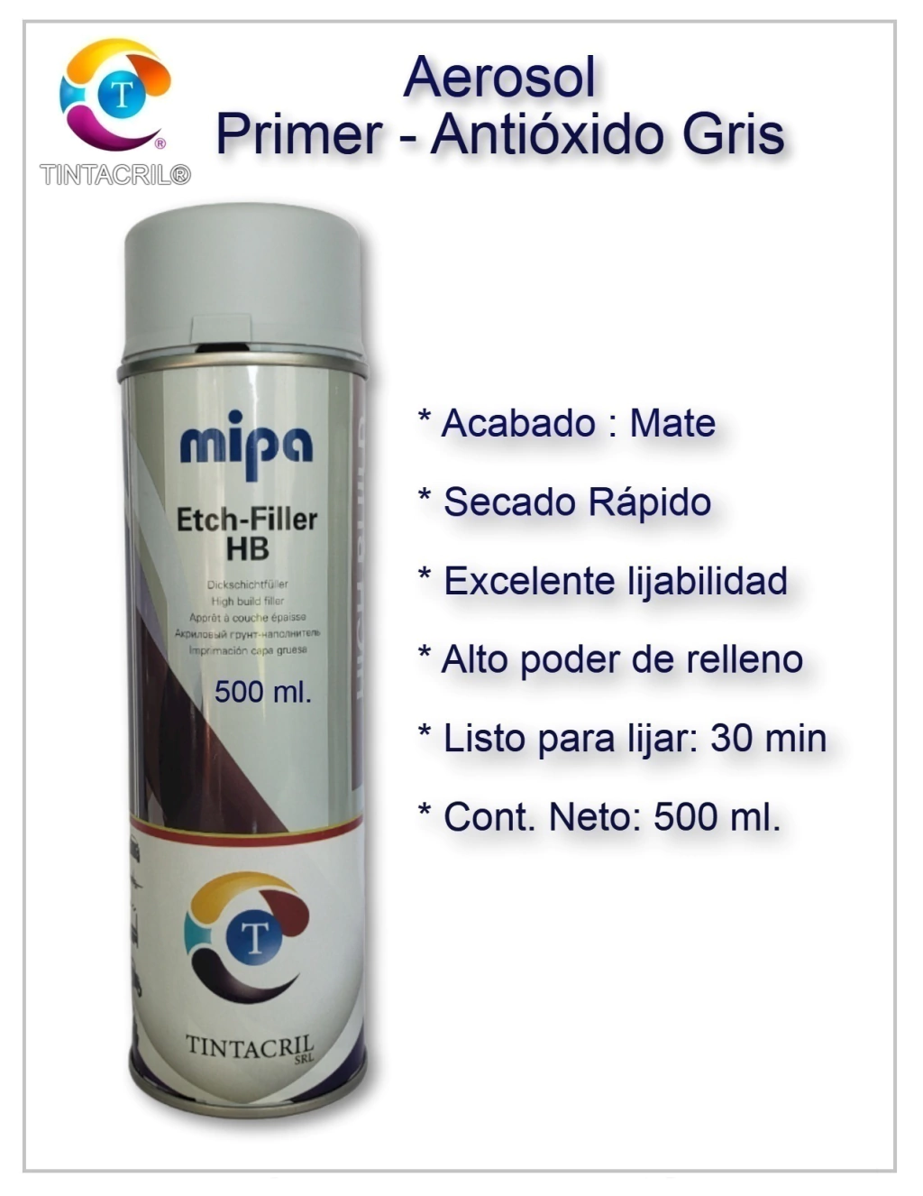 TINTACRIL® S.R.L.Primer Filler Gris Universal en Aerosol x 500 ml.